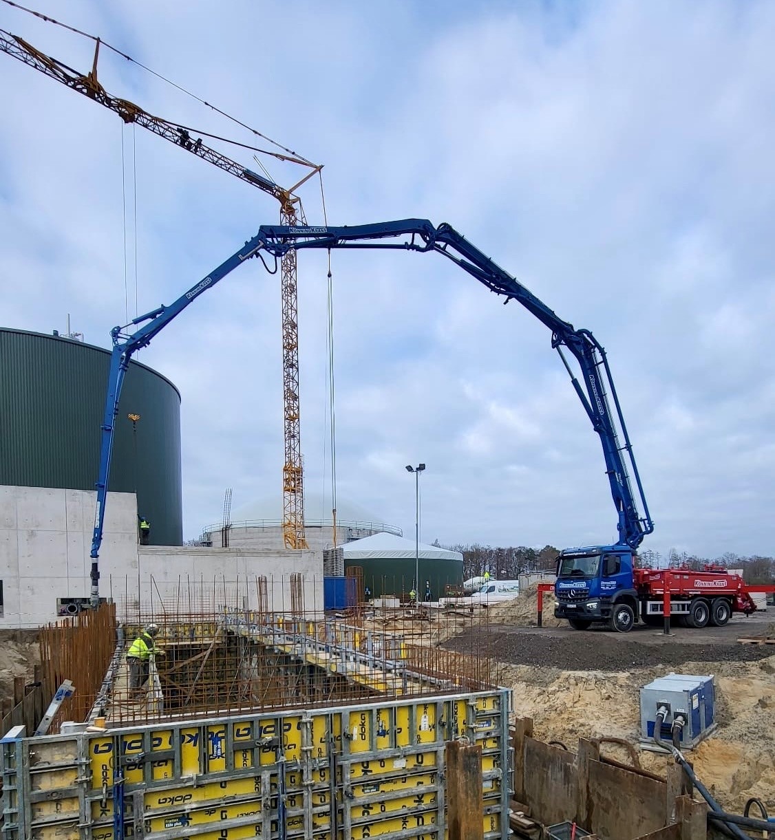 Durch den Einsatz moderner Betonpumpen kann Beton effizient auch über größere Entfernungen oder Höhen transportiert werden.